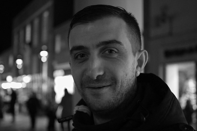 35mm f1.4 @ f1.4, flash through diffused beauty dish at 1/128 power with small reflector