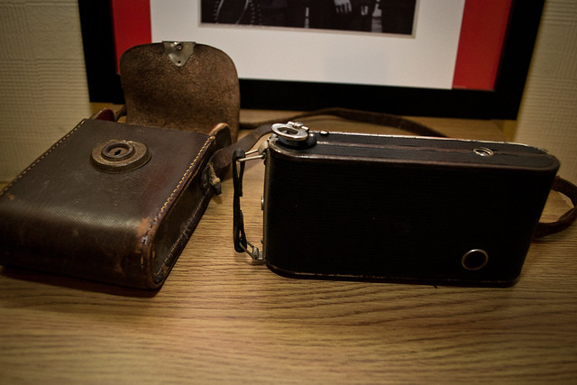 Well I got/inherited something new (old) yesterday and I am quite excited. I was visiting with my grandfather in the hospital last night and he asked if my mother had given me his old camera yet. No was the answer. So upon arriving home my dad digs it out.