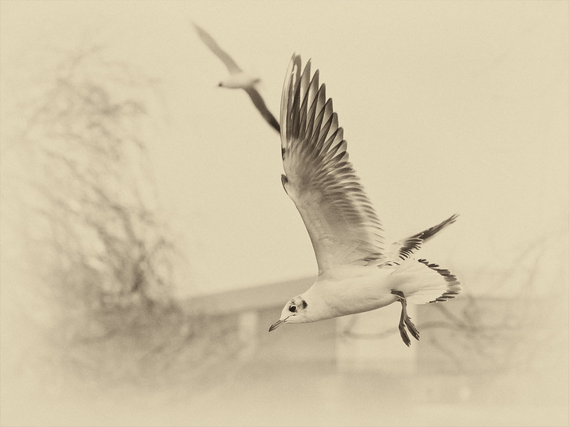 It's a great shot, and you've captured the gull perfectly!I don't like the processing if I'm honest, I don't think it suits this scene.