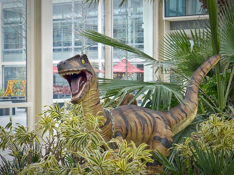 Those pesky dinosaurs! And to think I used to worry about those reports that you're only ever about 10 feet (or whatever) away from a rat in LondonAt least he's chained! Great one, Sarah!
